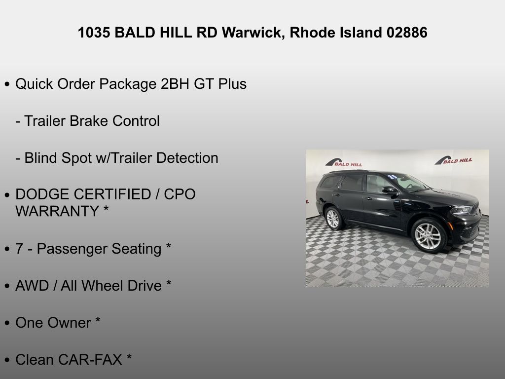 This one-owner Dodge Certified Pre-Owned Durango GT Plus also comes with a comprehensive warranty, giving you the confidence and protection you deserve. With its impressive list of features, powerful performance, and exceptional value, the 2025 Dodge Durango GT Plus is the perfect choice for the discerning SUV buyer.