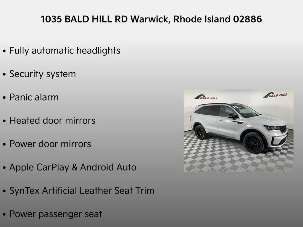 Recent Arrival! KIA CERTIFIED / CPO WARRANTY *, One Owner *, Clean CAR-FAX *, Sorento SX, 2.5L I4 DGI Turbocharged DOHC 16V LEV3-ULEV70 281hp, 8-Speed DCT, AWD, Wolf Gray, Black Artificial Leather, 3rd row seats: split-bench, Apple CarPlay & Android Auto, Auto High-beam Headlights, Automatic temperature control, Delay-off headlights, Exterior Parking Camera Rear, Front dual zone A/C, Front fog lights, Fully automatic headlights, Heated door mirrors, Heated front seats, Navigation System, Panic alarm, Power door mirrors, Power driver seat, Power Liftgate, Power moonroof, Power passenger seat, Remote keyless entry, Security system, Smart Key w/ Push Button and Remote Start, Steering wheel mounted audio controls, SynTex Artificial Leather Seat Trim.